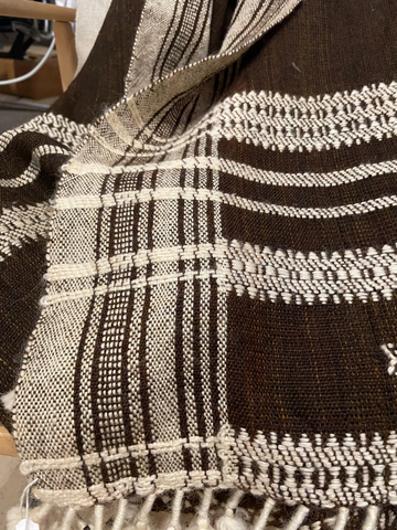 Ces textiles sont fabriqués à la main par les artisans locaux de Bhujodi, un village traditionnel de tisserands en Inde. Ils sont tissés à l'aide de vieux métiers à bras en bois, selon des techniques transmises de génération en génération. Les jetés Bhujodi sont composés à 100 % de laine filée à la main et de teintures naturelles. Veuillez noter qu'en raison du processus de teinture naturelle et de la nature des textiles tissés à la main, les couleurs et les motifs peuvent varier légèrement d'une pièce à l'autre.