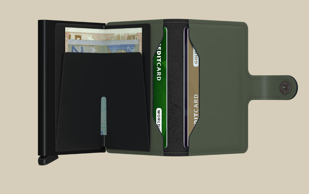 De petite taille et d'une capacité de stockage étonnamment grande, le Miniwallet combine le meilleur des deux mondes. L'extérieur contient des billets, des reçus et des cartes, tandis que le Cardprotector en aluminium vous permet de glisser des cartes en un seul mouvement et les protège de la flexion, de la rupture et des communications sans fil indésirables.